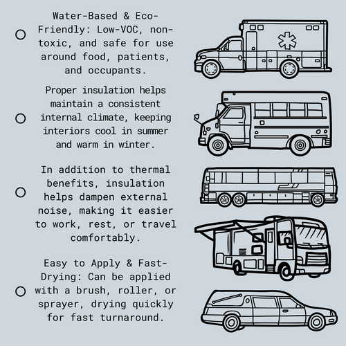 - Undercoating for vehicles against heat exposure from road surfaces.