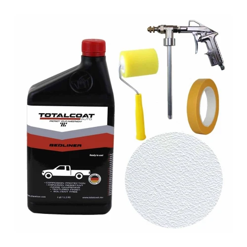 Total Coat White Bedliner, Truck Bed Coating provides exceptional rust and corrosion protection to pickup truck beds, cargo vans, etc. Our water-based formula is low odor, non-flammable; contains no solvents, hazardous or flammable ingredients. Exceptional adhesion on most metals, primers, paints, fiberglass, wood and concrete.