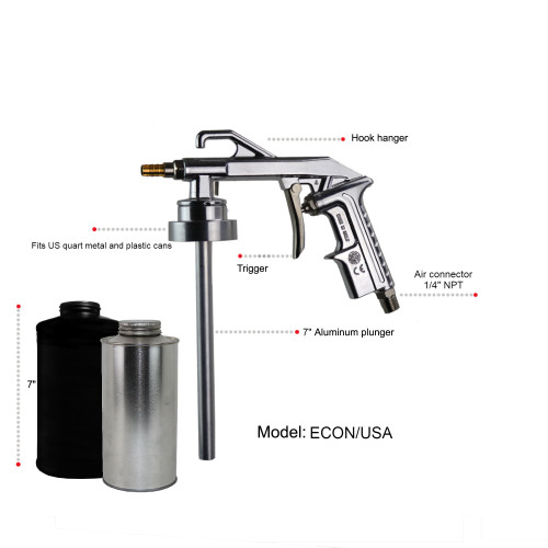 The gun has a threaded collar which allows for direct attachment to standard metal and plastic US quart cans <>with 1.75" neck opening.